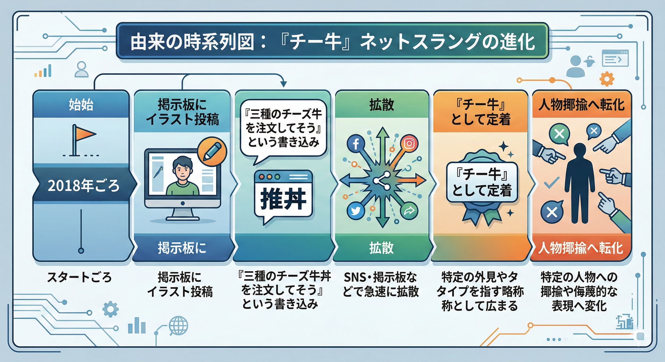 ネットスラングとしての「チー牛」は、どのようにして生まれ、どのような意味で使われるようになったのでしょうか。