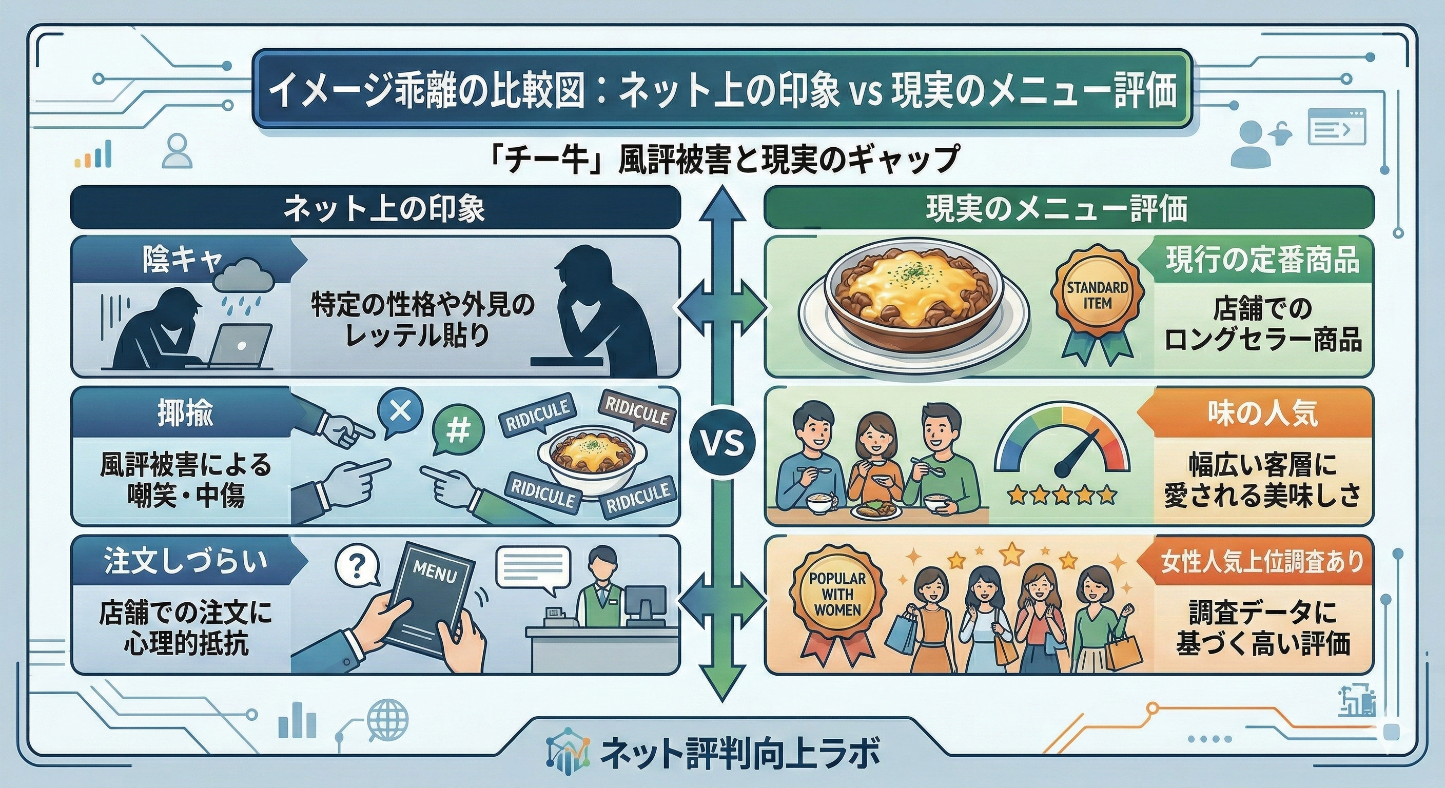 しかし、実際にはすき家で女性人気1位を獲得するなど、チーズ牛丼は多くの人に愛される美味しいメニューであり、ネット上のイメージと現実の人気には大きな隔たりが存在します。