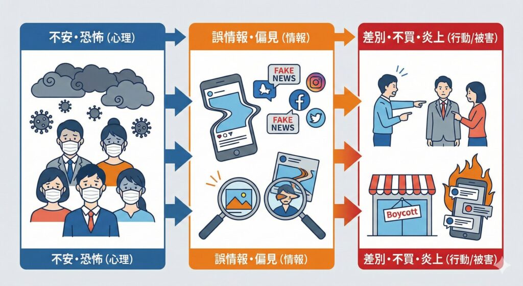 これらは人々の不安や恐怖心に煽られ、SNSなどを通じて瞬時に拡散されることで、深刻な人権侵害や経営上の危機につながる社会問題となりました。