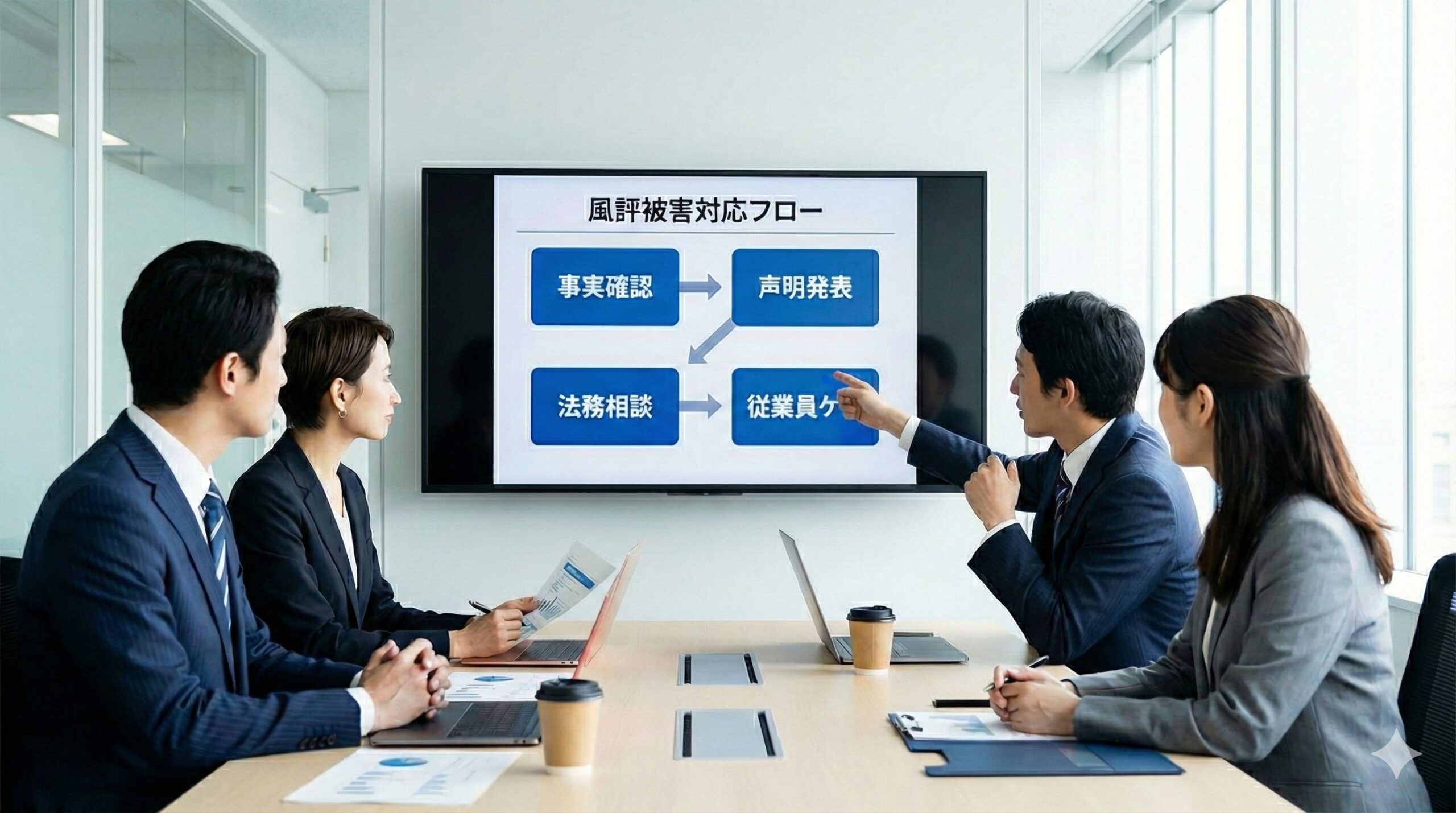 実際に風評被害が発生した場合に、誰が、いつ、何をすべきかを定めた緊急時対応マニュアルを事前に作成しておくことは、組織の危機管理において不可欠です。