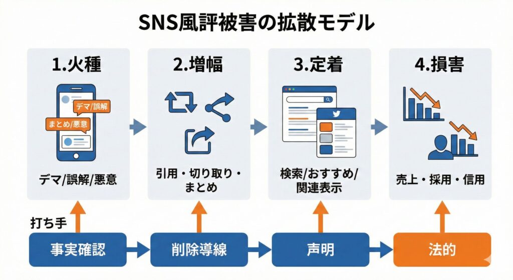 - “誰が言ったか”より“どこまで広がったか”が致命傷